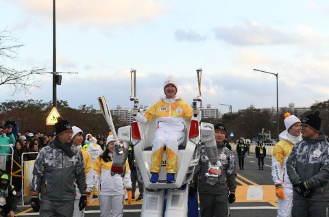 ▲ 2018 평창 동계올림픽 성화가 로봇 휴보와 ICT 테마 스페셜 봉송을 실시했다