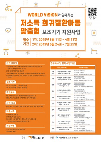 희귀질환아동 맞춤형 보조기기 지원사업은 경제적 여건이 좋지 않거나, 기기에 대한 정보 부족 등으로 보조기기 접근 및 구매하기 어려운 저소득층 희귀질환아동에게 개인별 맞춤형 보조기기를 지원하는 사업이다. 2017년도부터 월드비전과 함께 서울시동남보조기기에서 수행하고 있으며 전국(서울, 경기, 인천, 대전, 경남, 전북, 부산, 대구, 광주, 충북, 제주도)에서 신청이 가능하다.